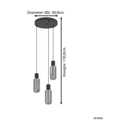 Eglo Pendelleuchte Maione Stahl Schwarz | IP20 - Geeignet für 3x E27