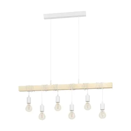 Eglo Pendelleuchte Townshend Stahl Weiß Holz | IP20 - Geeignet für 6x E27