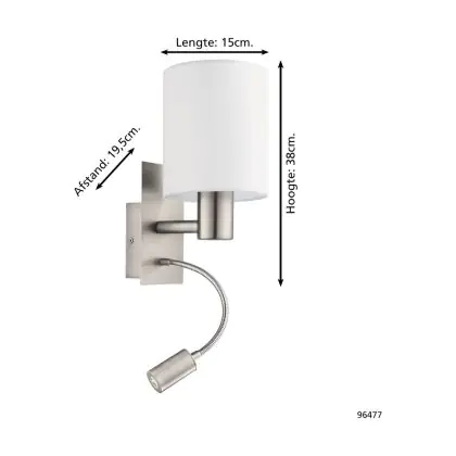 Eglo Wandleuchte Pasteri Stahl Satin-Nickel 40 | IP20 - Inkl. Spot und Exkl. 1x E27