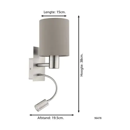 Eglo Wandleuchte Pasteri Stahl Satin-Nickel 40 | IP20 - Inkl. Spot und Exkl. 1x E27
