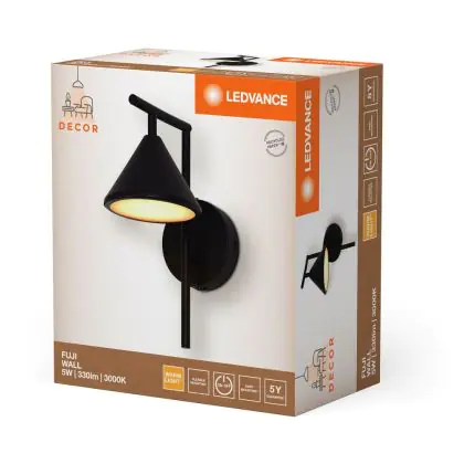 Ledvance LED Decor Wandleuchte Fuji Schwarz 5W 180lm - 930 Warmweiß| Höchste Farbwiedergabe