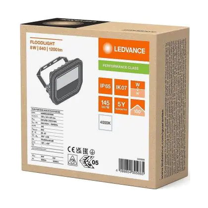 Mehrfachpackung 4x Ledvance Led-Scheinwerfer Aluminium Schwarz 8W 1200lm 100D - 840 Kaltweiß | IP66 - Symmetrisch