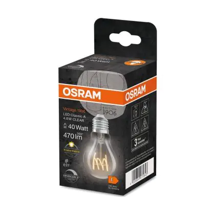 Osram Vintage 1906 LED Classic E27 Birne Fadenlampe Klar 4.8W 470lm - 827 | Dimmbar - Ersatz Für 40W