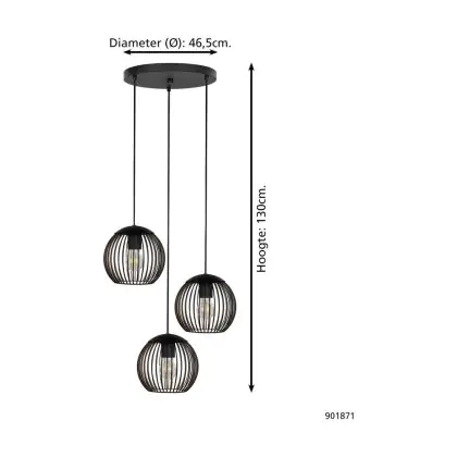 Eglo Suspension Luminaire Almanzora Échantillon Noir Cuivre | IP20 - Convient pour 3x E27