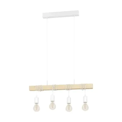 Eglo Suspension Luminaire Townshend Échantillon Blanc Bois | IP20 - Convient pour 4x E27