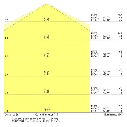 ![]() Le code couleur se compose de l'indice de rendu des couleurs (IRC) et de la température de couleur (Kelvin). Le premier chiffre indique le rendu des couleurs (1 = très mauvais rendu des couleurs, 9 = meilleure authenticité des couleurs). Le deuxième et troisième chiffre indiquent la température de la couleur. Exemple : Le code couleur "830" indique que la lampe a un bon rendu des couleurs (8) et une couleur de lumière blanche chaude (30 = 3000K). |