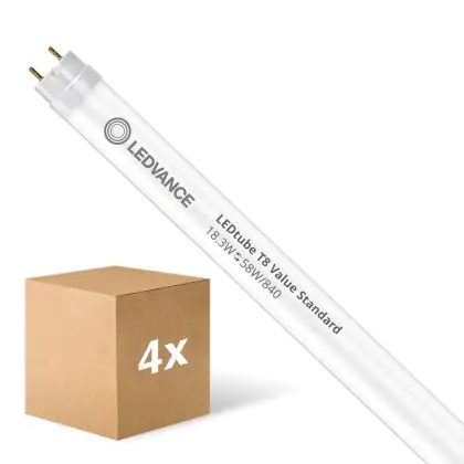 Description Lot 10x Ledvance Tube LED T8 Value (EM/Direct 230V) Standard Output 18.3W 2200lm - 840 | 150cm - Remplacement 58W